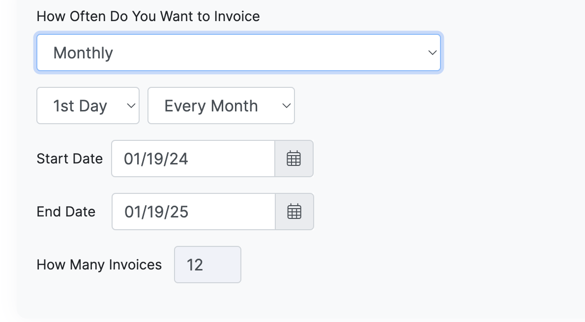 Next, choose how often you want to bill them. In this example, we will do it on the first day of each month.