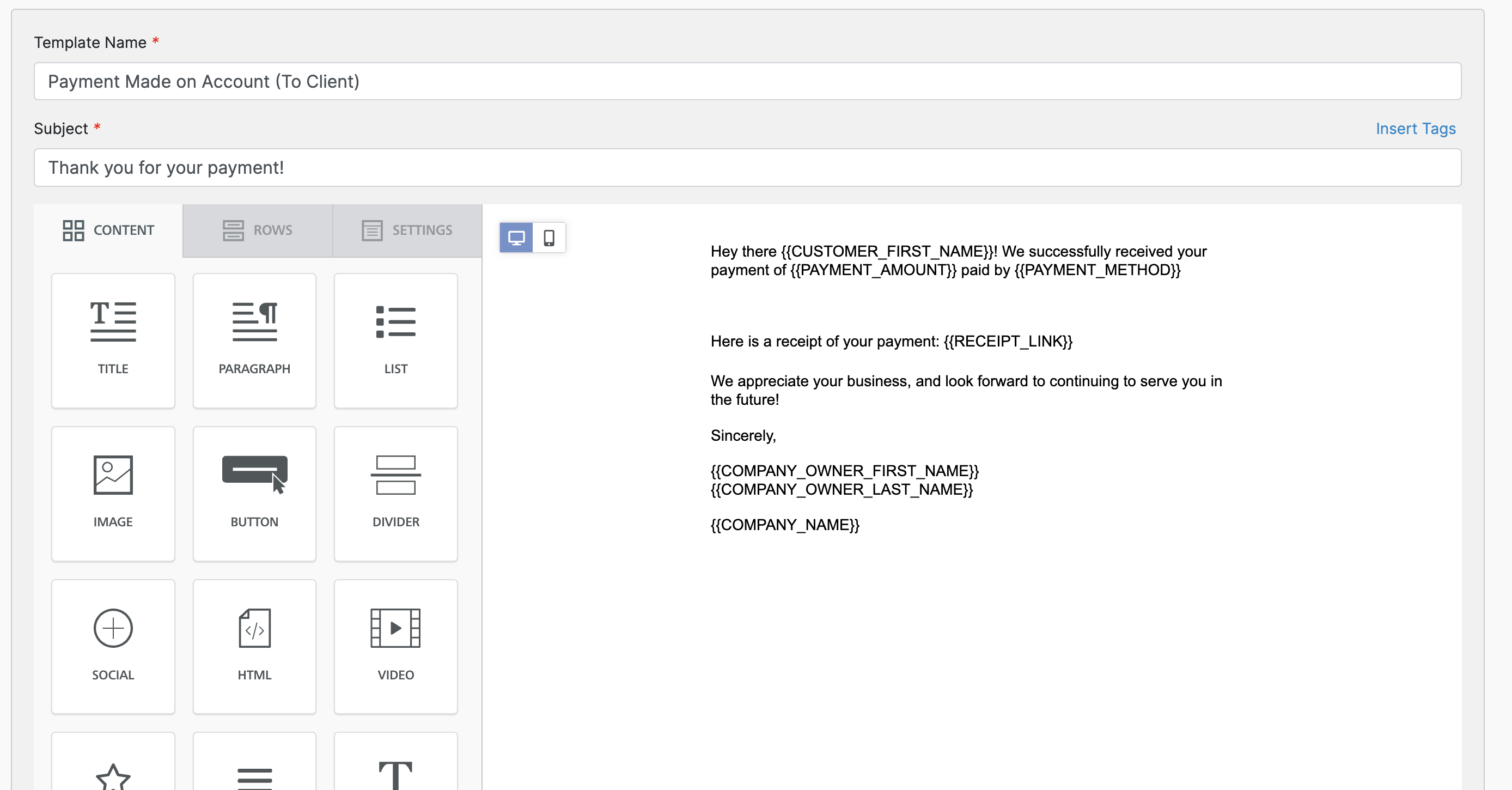 When a customer makes a payment on their account, sending an immediate email follow-up with a thank you and receipt link can go a long way. Here is an example of how you can set something like this up.